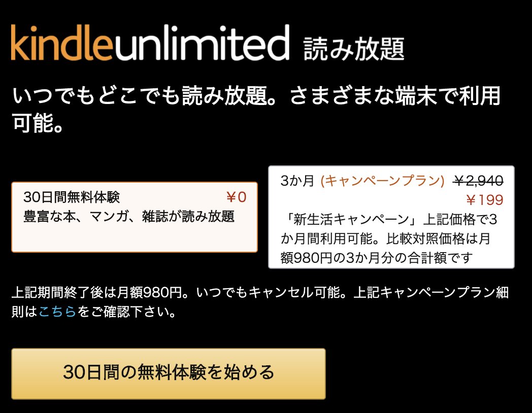 Kindleの電子書籍が3ヶ月間で199円という価格で読み放題というのはありがたいです。
